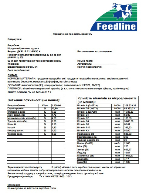 Зробіть відгодівлю прибутковою. Оберіть Feedline (фідлайн) Бройлер Фініш1 6% і насолоджуйтесь відмінним результатом!